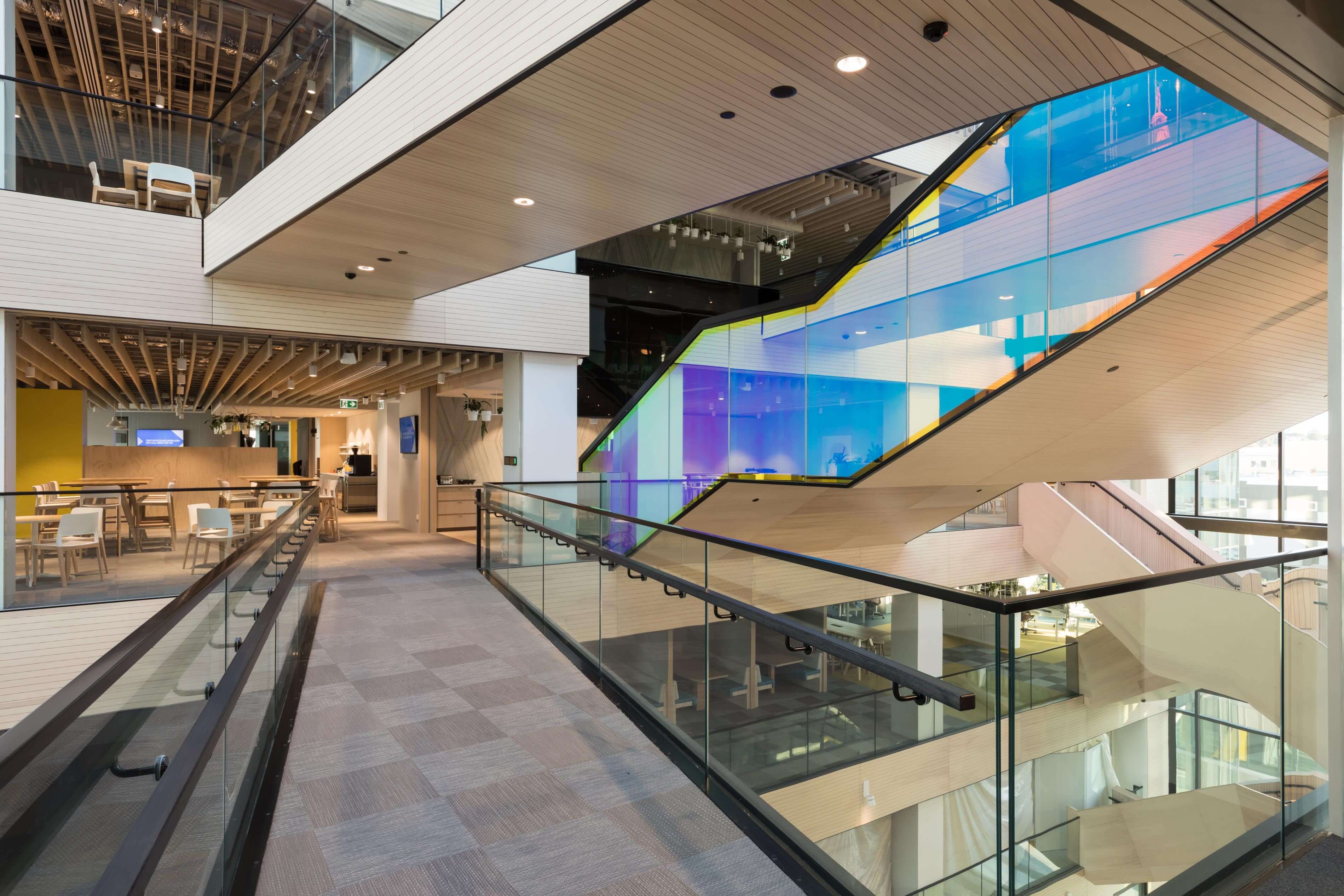 A high-end fast track fitout for one of New Zealand's leading energy providers, with a new raised floor throughout, 4 levels with new feature joinery, natural stone cladding and feature grandstand.