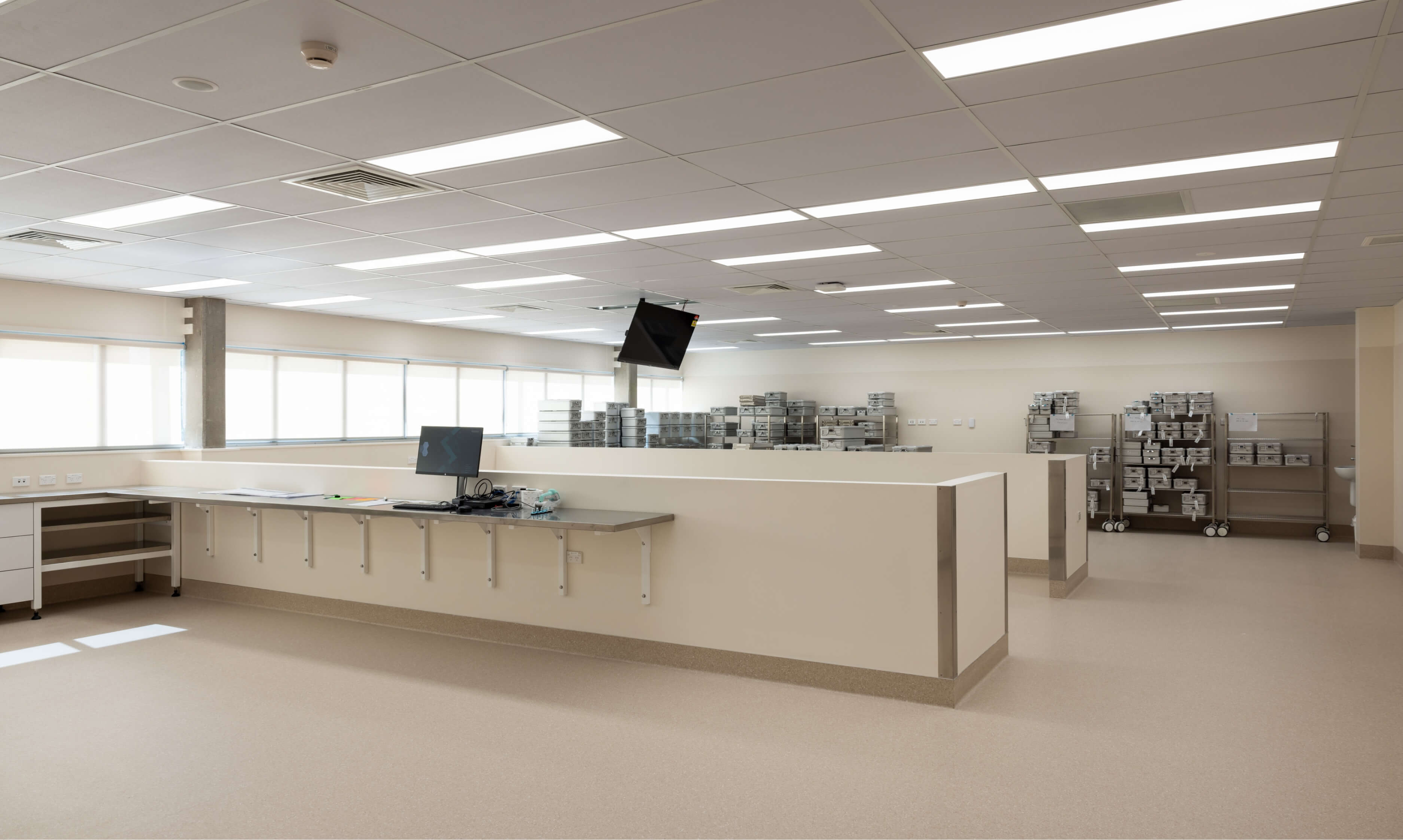 The location is responsible for the decontamination, assembly, sterilisation, and packaging of all equipment used across more than 20 operating theatres daily. Project included systems such as industrial service upgrades, staged air condition room pressurisation and extraction, clinical surface treatments, Reverse Osmosis water treatment and emergency backup system to ensure uninterrupted operation.